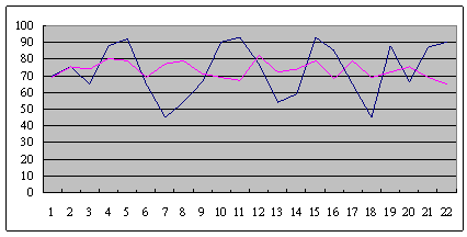 從平均數(shù)的分析方法來看,兩個呼叫中心這段時間的平均服務(wù)水平都是一樣的,都是73,但從方差的角度來看,這兩個呼叫中心內(nèi)部的管理,卻是非常不一樣的,兩條線的方差就是明顯不一樣(或是說標準差)。
