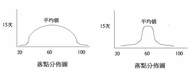 左邊這張圖的平均值為60秒,其中大約有15通左右是60秒,有幾通電話短到20秒,有幾通電話長到100秒,也有很多電話是30秒、40秒、70秒、80秒。
