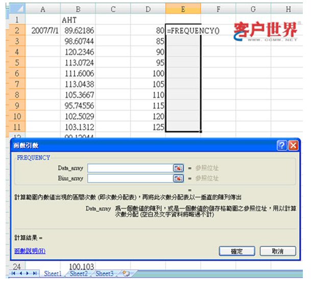 這就是微軟產(chǎn)品最特別的地方:你不能按“確定”這個(gè)鍵,如果按“確定”,你就死定了!筆者曾經(jīng)為這件事,研究了好久,整個(gè)Help的幫助畫面,也沒說要怎么做,終于在一個(gè)地方找到:必須同時(shí)按三個(gè)鍵:Shift、Ctrl和回車(Enter)。同時(shí)按下這三個(gè)鍵,就會(huì)得到你要的頻次,如下圖的E這個(gè)數(shù)列。