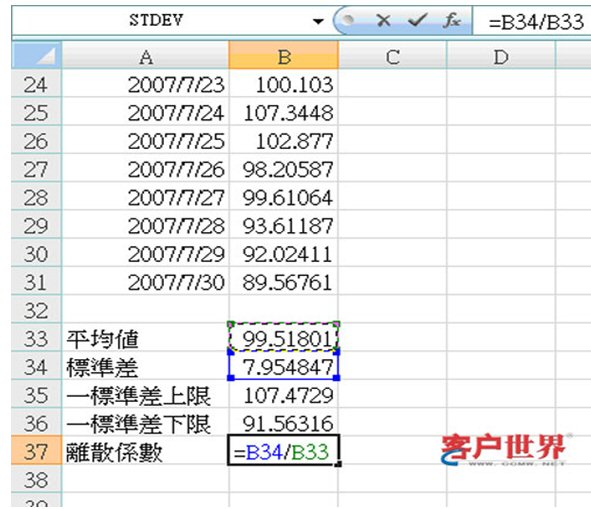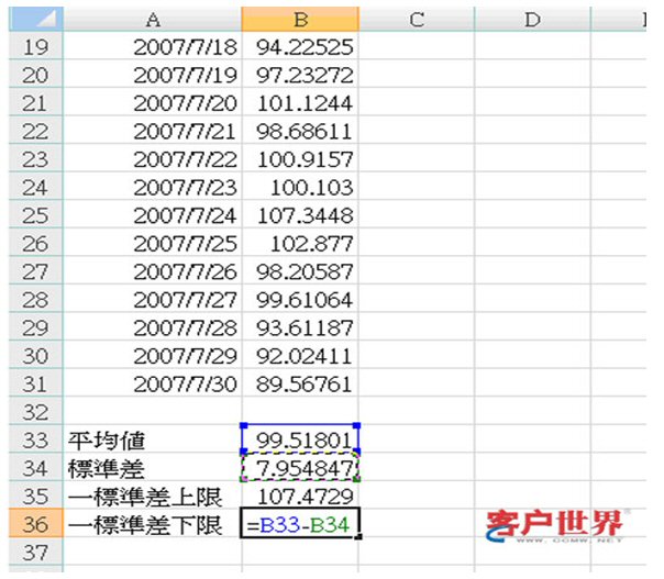 圖說:B35是一個(gè)標(biāo)準(zhǔn)差上限,而B36是一個(gè)標(biāo)準(zhǔn)差下限