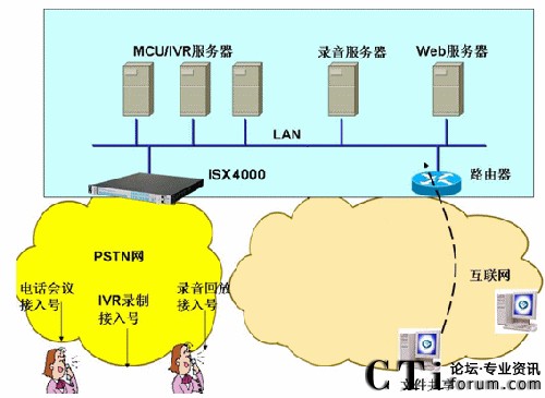 STOP SERVICE)平臺,是當前和未來電信運營商(TCO)及虛擬服務提供商(SP/CP)增值業(yè)務規(guī)劃的最佳選擇,特別是中國重組后的3大運營商都具備全業(yè)務運營資格,正在規(guī)劃前所未有的全業(yè)務運營平臺(融合有線和無線、融合語音和數(shù)據(jù)、融合2G和3G、融和傳統(tǒng)PSTN和NGN網(wǎng)絡、融合電信網(wǎng)和互聯(lián)網(wǎng)),怎樣的設(shè)備才能問鼎和支撐這樣的全業(yè)務平臺?不妨仔細研究ISX4000的豪華單機和級聯(lián)配置:單機支持最大128E1(SS7、PRI)光電接口接入、4096路語音資源、4096路會議資源、多達6464路IP(G.711-6464路、G.729-2688路、G.723-2048路)、768路傳真資源、1280路FSK資源(用于E-POS)、1024路視頻資源。通過簡單易用的管理維護工具OAM可以對上述資源任意組合、動態(tài)配置、平滑升級。不僅如此,ISX4000本機同步配置的DSP采用高性能的回聲消除和音質(zhì)增強(EC