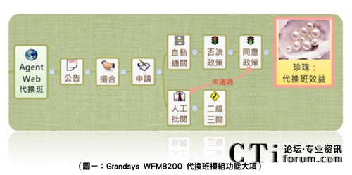 以Grandsys WFM8200為例,其所提供的班務(wù)管理模組,允許呼叫中心匯入Excel班表并提供主管以圖形拖拉調(diào)度班務(wù),而客服人員可以瀏覽器,進行代換班之公告、撮合、申請,除了自動比對同意否決政策進行,自動通關(guān)的判斷以外,班組長或排班師也可進行人工批閱,可以說是呼叫中心入門的班務(wù)管理系統(tǒng)。