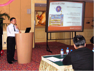 緊接著是本次活動(dòng)的高潮部分--微軟CRM3.0隆重發(fā)布。上海葡萄城信息技術(shù)有限公司CRM產(chǎn)品經(jīng)理徐曦先生向與會(huì)的客戶(hù)詳細(xì)介紹了微軟CRM的研發(fā)背景、應(yīng)用行業(yè)、實(shí)施效果,以及與同類(lèi)產(chǎn)品相比優(yōu)勢(shì)所在。徐曦先生風(fēng)趣幽默的比喻,生動(dòng)的例證配合現(xiàn)場(chǎng)演示,將活動(dòng)氣氛推向了高潮,四十分鐘的精彩演講引起了熱烈反響。
