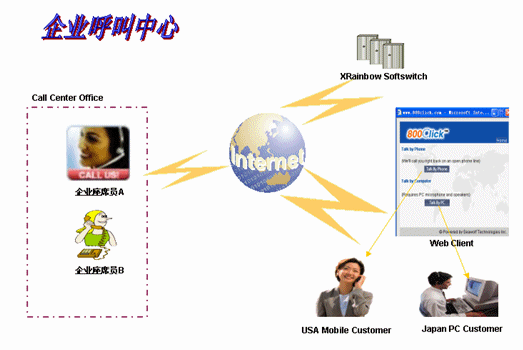 企業(yè)呼叫中心通過WEB方式解決可以提高10倍成交機(jī)會,您的客戶將享受“在線客服”的免費(fèi)電話服務(wù)。很多人在訪問商業(yè)網(wǎng)站的時(shí)候可能都有過這樣的經(jīng)歷:覺得網(wǎng)上提供的資料不夠詳細(xì),希望通過詢問客服人員來獲取更細(xì)致和個(gè)性化的信息。用戶只要點(diǎn)擊一下網(wǎng)頁上服務(wù)中心的鏈接就可以和中心的客服人員進(jìn)行直接的溝通。用戶甚至不需要知道服務(wù)中心的號碼。使用戶獲得更為有效的直接通話服務(wù)。為您的網(wǎng)站建立起專業(yè)的呼叫中心,既是網(wǎng)絡(luò)推廣、網(wǎng)絡(luò)營銷的助手又是客戶關(guān)系管理的專家。
