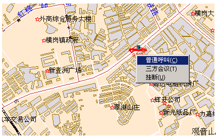 - 可視化指揮調(diào)度:在電子地圖上點(diǎn)擊相應(yīng)的圖標(biāo)即可撥打警力單位的固定電話以及向GPS巡邏車以及集群終端/公安分局/派出所/聯(lián)動單位電話號碼/手機(jī)號碼發(fā)起單呼和組呼;同時(shí)與接處警席配合使用,可以實(shí)現(xiàn)可視化指揮調(diào)度與非可視化指揮調(diào)度的全方位立體的混合指揮調(diào)度。