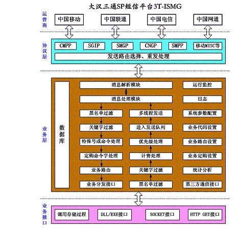 ;國(guó)際通用協(xié)議 SMPP 3.4 、 SMPP 3.4 ,每個(gè)協(xié)議實(shí)行模塊化,開(kāi)發(fā)成對(duì)應(yīng)的動(dòng)態(tài)鏈接庫(kù),并提供統(tǒng)一的接口。