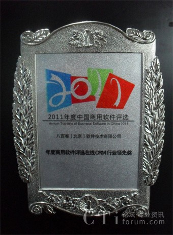 CTI論壇(ctiforum)12月20日消息(記者 張潔): 12月9日,以“模式創(chuàng)新帶動產(chǎn)業(yè)及應(yīng)用轉(zhuǎn)型”為主題的“信息化領(lǐng)袖峰會暨商用軟件評選頒獎大會”在上海隆重舉行。本次大會分四個環(huán)節(jié)進(jìn)行,其中最重要的環(huán)節(jié)莫過于揭曉“2011年度中國商用軟件評選”結(jié)果,作為全球領(lǐng)先的企業(yè)管理軟件供應(yīng)商八百客(www.800app.com)成功斬獲2011年度中國商用軟件評選“在線CRM行業(yè)領(lǐng)先獎”。同時,八百客的三位企業(yè)用戶美國宣偉涂料公司的潘總、上海企盈投資管理有限公司的何總、華圖教育的王總分別獲得 “2011年度信息化貢獻(xiàn)人物獎”大獎。