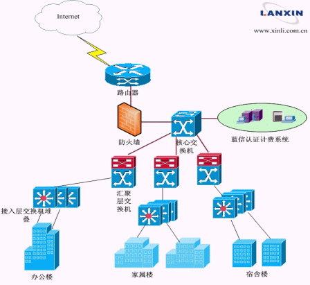 在此形勢下,解放軍后勤工程學(xué)院積極探索,尋求現(xiàn)代校園網(wǎng)建設(shè)的新出路。經(jīng)過對各種方案的收集整理,解放軍后勤工程學(xué)院與重慶電信達成共識,一起共謀現(xiàn)代校園網(wǎng)建設(shè)新模式:重慶電信負責(zé)提供網(wǎng)絡(luò)帶寬及軟硬件資源,依賴其深厚敦實的技術(shù)后盾及多年豐富的建網(wǎng)經(jīng)驗,攜手信利公司的藍信認(rèn)證計費系統(tǒng)為校方提供一套從硬件到軟件的完整解決方案,讓廣大師生能快捷方便地享受更加豐富的網(wǎng)絡(luò)服務(wù);而校方依據(jù)當(dāng)前網(wǎng)絡(luò)狀況,可以對使用用戶進行行之有效的管理和維護,徹底解決了校方之憂,開辟了當(dāng)前形勢下的新天地。