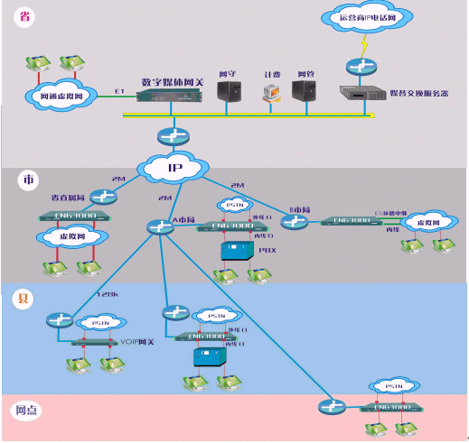 政府、行業(yè)VOIP系統(tǒng)結構圖: