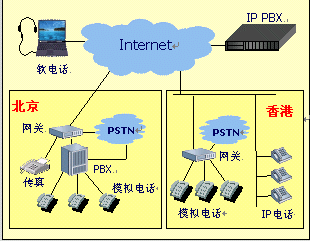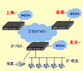 通過(guò)網(wǎng)絡(luò)電話終端IAD的內(nèi)線口(PHONE),連接當(dāng)?shù)剞k公電話環(huán)境(程控交換機(jī)\電信虛擬網(wǎng)\電話機(jī)),實(shí)現(xiàn)內(nèi)部電話通過(guò)互聯(lián)網(wǎng)通信。通過(guò)外線口(LINE)連接PSTN市話網(wǎng),實(shí)現(xiàn)注冊(cè)的外部移動(dòng)電話\市話呼入,客戶服務(wù)電話的呼入,各地區(qū)間的長(zhǎng)途電話的"落地"。