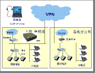 有了這個 IP 電話網絡,出差員工可以方便地使用軟電話通過網絡與公司免費通訊,直接可以通過公司的 IP 電話網,撥打當?shù)仉娫,實行長話變市話,降低了出差通訊成本。