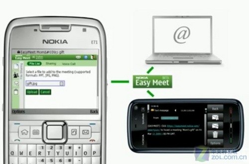 北京時間2009年4月16日,諾基亞發(fā)布Easy Meet,這是一款移動設備共享工具,可以實現(xiàn)移動設備與移動設備或PC之間的實時共享,并且所有的共享并不需要另外下載軟件,僅用手機自帶的瀏覽器就可實現(xiàn),非常方便。用戶僅需正確的輸入Easy Meet的地址鏈接,就可成功的創(chuàng)建連接,并向每位連接人發(fā)送電子郵件或者SMS,僅需一鍵確認,每位參與人就可通過Easy Meet查看共享文件,參與互動或者直接使用別的設備上的內(nèi)容。