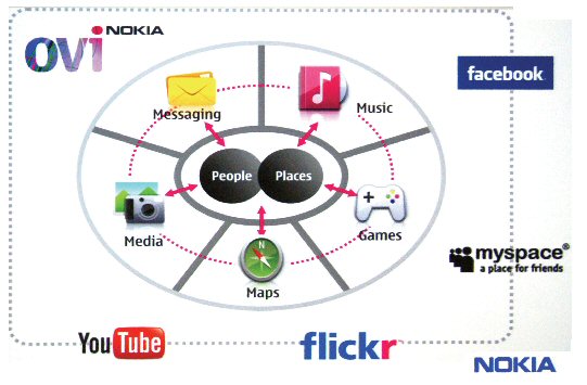 諾基亞的鮮明主張是:移動(dòng)互聯(lián)網(wǎng)的發(fā)展與推進(jìn),必須最大限度地開發(fā)融合“人”與“地”的移動(dòng)應(yīng)用,突顯互聯(lián)網(wǎng)所沒(méi)有的一些特性,而絕不能簡(jiǎn)單地將互聯(lián)網(wǎng)的應(yīng)用照搬到手機(jī)上。