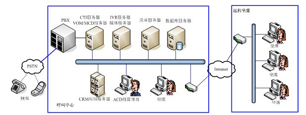 VOM MCD系統(tǒng)是架構(gòu)在傳統(tǒng)PBX之上的一個(gè)中間件應(yīng)用系統(tǒng),必須和PBX,CTI服務(wù)器、媒體服務(wù)器、CRM等系統(tǒng)協(xié)同應(yīng)用,才能發(fā)揮最大效用。