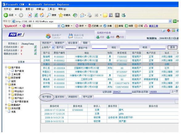 興光煤氣集團公司呼叫中心界面