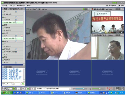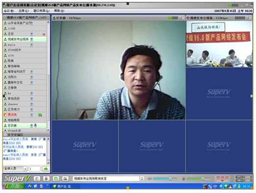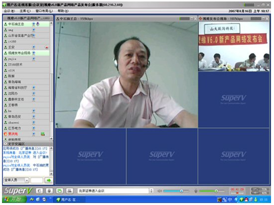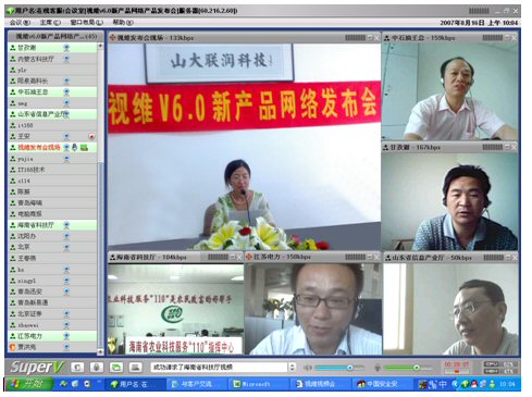 2007年8月16日,視維視頻會(huì)議V6.0新產(chǎn)品網(wǎng)絡(luò)發(fā)布會(huì)在美麗的泉城濟(jì)南舉行,山東省信息產(chǎn)業(yè)廳、濟(jì)南市信息產(chǎn)業(yè)局的領(lǐng)導(dǎo)、山東省電信等上級(jí)主管部門(mén)領(lǐng)導(dǎo),視維產(chǎn)品新老用戶(hù)和有視頻會(huì)議需求的潛在客戶(hù),國(guó)內(nèi)外合作伙伴,IT168、中國(guó)計(jì)算機(jī)報(bào)、電腦商報(bào)、C114、支點(diǎn)網(wǎng)、計(jì)算機(jī)世界、CTI論壇、投影時(shí)代等國(guó)內(nèi)知名媒體100多人參加了這次網(wǎng)絡(luò)發(fā)布會(huì)。在此次會(huì)議上,山大聯(lián)潤(rùn)公司通過(guò)視頻會(huì)議與各地與會(huì)者進(jìn)行了良好的溝通,同時(shí)這次發(fā)布會(huì)開(kāi)創(chuàng)了用視頻會(huì)議發(fā)布新產(chǎn)品的先河。