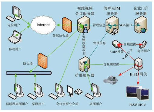 視維系統(tǒng)是一個(gè)基于IP網(wǎng)絡(luò)的綜合業(yè)務(wù)通訊平臺(tái),通過(guò)多網(wǎng)絡(luò)接入方式實(shí)現(xiàn)網(wǎng)通、電信、聯(lián)通等用戶(hù)間高速互通;通過(guò)H.323模塊將企業(yè)內(nèi)部原有的硬件設(shè)備與視維系統(tǒng)鏈接起來(lái),有效的節(jié)約了投資;其他如SIP模塊,短信模塊,固網(wǎng)電話(huà)接入等都可以根據(jù)用戶(hù)需要進(jìn)行擴(kuò)展。視維系統(tǒng)可以支持分布式視頻服務(wù)器集群,可利用企業(yè)內(nèi)部網(wǎng)絡(luò)或者互聯(lián)網(wǎng)構(gòu)建超大規(guī)模企業(yè)綜合通訊平臺(tái);凇懊嫦蚍⻊(wù)體系架構(gòu)(SOA)”設(shè)計(jì)架構(gòu),實(shí)現(xiàn)很靈活地方便地與其業(yè)務(wù)系統(tǒng)如OA,HR,CRM,