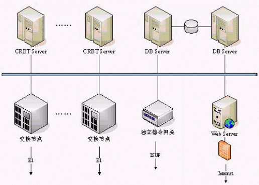 1、系統(tǒng)中的多臺CRBT Server主機采用高性能的UNIX服務(wù)器,負荷分擔(dān)的運行方式,多機間協(xié)同工作,互為備份。