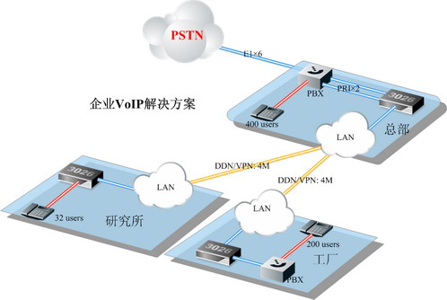 要在兼容原有PSTN網絡的同時在內部使用VoIP網絡;