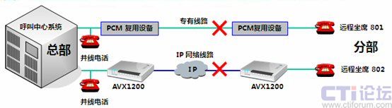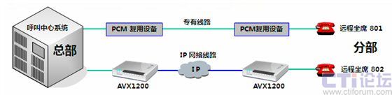 傲威通信采用AVX1200作為中心端和遠程坐席端的復接設(shè)備,采用Hotline形式,只要遠程坐席員摘機,中心端的呼叫中心交換機立刻接到摘機指令。當有呼叫到來,遠程坐席可像本地坐席一樣接聽電話,無任何差異。