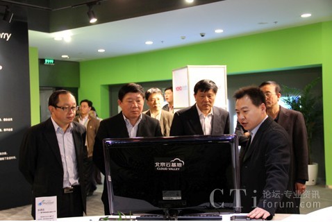 CTI論壇(ctiforum)3月29日消息(記者 潘婷婷):3月11日下午,上海市副市長艾寶俊、市經(jīng)信委主任王堅、市經(jīng)信委軟件和信息服務(wù)業(yè)處處長朱宗堯等一行人專程來北京云基地,在寬帶資本董事長田溯寧、云基地公司董事長趙安建等人的陪同下對云基地進(jìn)行了參觀和考察。