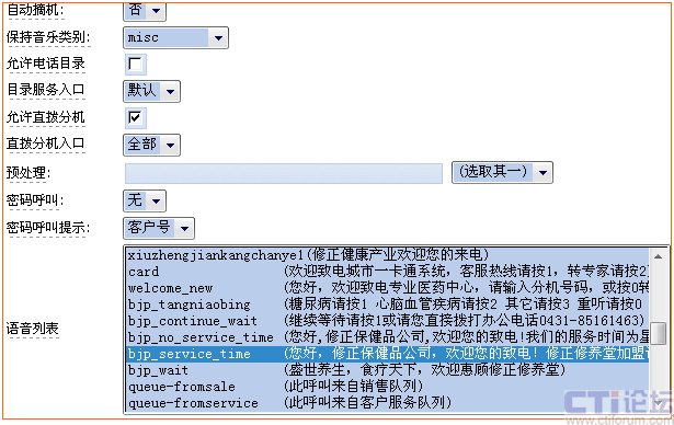 - 自動(dòng)語(yǔ)音應(yīng)答(IVR):實(shí)現(xiàn)全天候自助式服務(wù)。通過(guò)系統(tǒng)的交互式應(yīng)答服務(wù),來(lái)電者可以很容易的通過(guò)電話機(jī)鍵盤輸入他們的選擇,從而得到24小時(shí)的服務(wù)。用戶根據(jù)自己的業(yè)務(wù)需求自主錄制多層次IVR語(yǔ)音自動(dòng)應(yīng)答流程,并在更換之后能夠和后臺(tái)的程序相結(jié)合(如增加一個(gè)流程、刪除一個(gè)流程、跳過(guò)某個(gè)流程等)。根據(jù)需要,也可以將來(lái)電者轉(zhuǎn)移到不同的服務(wù)組甚至不同的單位或者部門。