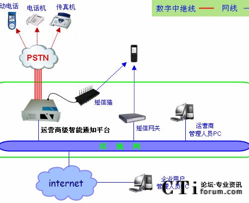 運(yùn)營(yíng)商管理人員通過(guò)局域網(wǎng)或者internet網(wǎng)絡(luò)訪(fǎng)問(wèn)智能通知平臺(tái),管理和維護(hù)企業(yè)用戶(hù)的帳戶(hù)信息,并為企業(yè)用戶(hù)提供個(gè)性化功能配置。