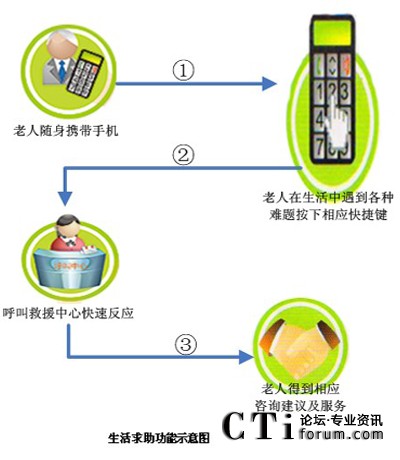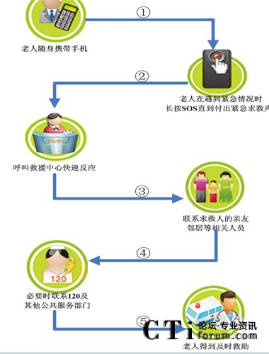 老人使用不記任何電話號,按下紅鍵(盲人按粗糙鍵)就可發(fā)送緊急求救信號;按下綠鍵可以發(fā)送求助信號,求助信息根據(jù)用戶需要在同一時(shí)間發(fā)送到信息服務(wù)中心、社區(qū)網(wǎng)格管理員、老人指定親屬、物業(yè)公司、及有關(guān)部門,可實(shí)現(xiàn)完整信息獲取和快速響應(yīng),啟動(dòng)多方通話進(jìn)行緊急調(diào)度,保障老人的生命財(cái)產(chǎn)安全。