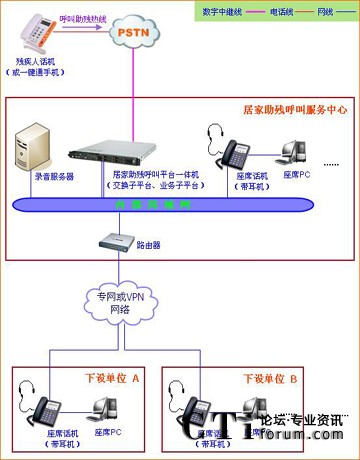 居家助殘呼叫系統(tǒng)平臺的網(wǎng)絡(luò)架構(gòu)如圖所示: