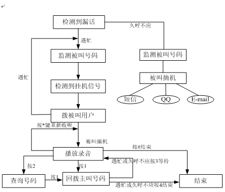 固話漏話業(yè)務(wù)是基于目前固網(wǎng)上存在著的大量遇忙呼叫和久呼不應(yīng)的現(xiàn)狀,通過漏話監(jiān)測設(shè)備實時監(jiān)測主叫用戶和被叫用戶的業(yè)務(wù)信息(如主被叫用戶的屬性、電話號碼、來電時間、是否已掛機等),并按照預(yù)定的業(yè)務(wù)邏輯和方式,提示用戶回呼原主叫用戶。通過這種方式,將外網(wǎng)的話務(wù)量轉(zhuǎn)移到本網(wǎng)內(nèi),從而提高業(yè)務(wù)收入。