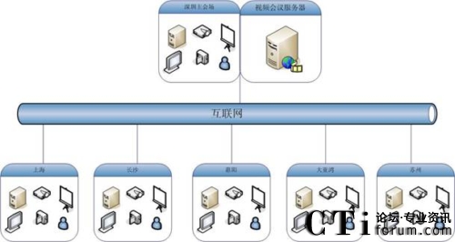如圖,深圳南山地產(chǎn)視頻會議系統(tǒng)應(yīng)用規(guī)模為6個點,包括深圳、上海、長沙、惠陽、大亞灣、蘇州。服務(wù)器部署在深圳用來保證香港和內(nèi)地的鏈接效果,服務(wù)器出口帶寬為3M共享,各分會場通過互聯(lián)網(wǎng)訪問服務(wù)器。在這個網(wǎng)絡(luò)平臺上,紅杉樹網(wǎng)絡(luò)會議所提供的高質(zhì)量音視頻圖像、方便易用的文檔、文件共享數(shù)據(jù)功能,使得南山地產(chǎn)能夠在這個平臺上進行從桌面討論到會議室正式會議等各種規(guī)模的應(yīng)用。在這個平臺上,除了進行日常例會、業(yè)務(wù)交流等常見的應(yīng)用之外,業(yè)務(wù)培訓、異地招聘等也是經(jīng)常進行的內(nèi)容。業(yè)務(wù)人員利用數(shù)據(jù)功能,節(jié)約了以前培訓所花費的大量精力和時間,為新項目迅速占領(lǐng)市場掌握了主動。