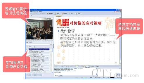 因為具備了流暢的音視頻溝通以及豐富的數(shù)據(jù)共享功能,IT企業(yè)不但可以利用該套系統(tǒng)實現(xiàn)內(nèi)部員工的溝通及培訓(xùn),還可以用來增強與顧客、供應(yīng)商的交流,從而產(chǎn)生更多的新業(yè)務(wù)機會。利用最低的溝通成本創(chuàng)造最高的價值,提高了工作效率,降低了工作成本,一舉兩得,阿里巴巴就利用該套系統(tǒng)開啟了客戶培訓(xùn)的新篇章: