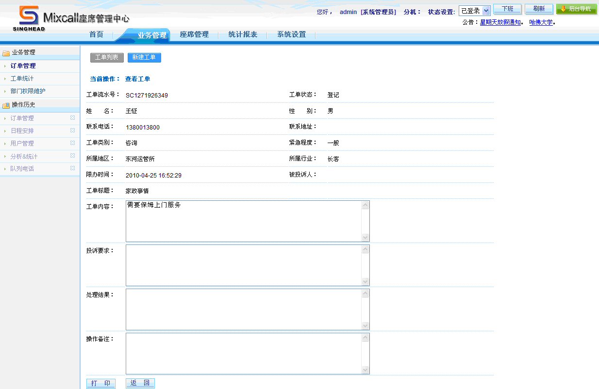 個(gè)人會(huì)員通過(guò)電話(huà)、短信、互聯(lián)網(wǎng)把需求反饋給中心,中心座席人員通過(guò)工單形式把需求反饋給對(duì)應(yīng)家政公司。