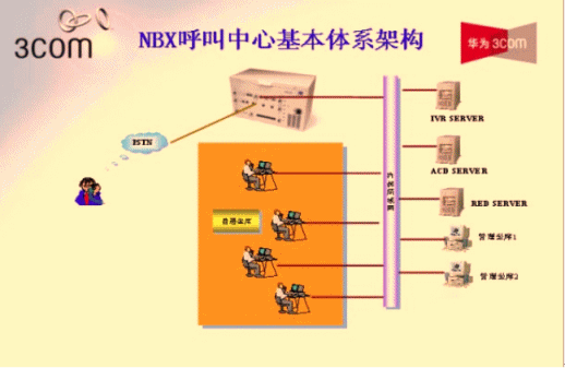 - 華為-3Com NBX采用數(shù)據(jù)包交換技術(shù),實現(xiàn)了語音與數(shù)據(jù)的融合。NBX呼叫中心系統(tǒng)平臺可以為客戶服務(wù)人員提供軟件和硬件的IP電話終端,用戶只需將坐席PC或IP話機接到桌面網(wǎng)口即可,無須重新部署語音線路,同時利用語音與數(shù)據(jù)融合的技術(shù)使得客服中心實現(xiàn)了統(tǒng)一的通信網(wǎng)絡(luò),減少的2套布線的繁瑣,大大降低了系統(tǒng)的維護(hù)及管理的工作量。