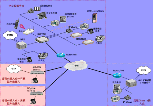 遠端使用 HuaWei-3COM 的 VG 語音網關接入 PSTN 。
