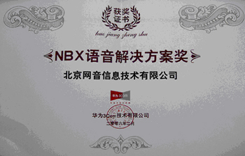 北京網(wǎng)音信息技術有限公司在2006年度華為-3Com公司渠道峰會上榮獲"IP語音解決方案獎"。