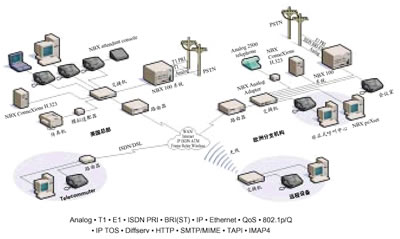 只需要簡單地將NBX 100系統(tǒng)和計(jì)算機(jī)接入以太局域網(wǎng),就可以構(gòu)成一個簡單而統(tǒng)一的網(wǎng)絡(luò)體系。
