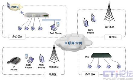 隨著北京西南物流中心業(yè)務的不斷發(fā)展,其庫區(qū)在不斷落成,倉儲面積仍不斷擴大。由于各個庫區(qū)及辦公樓都具有無線Mesh網(wǎng)絡覆蓋,西南物流中心在現(xiàn)有無線網(wǎng)絡基礎上陸續(xù)開展企業(yè)信息化業(yè)務。由于各個庫房與辦公樓之間都有一定距離,因為在中心的通信成本構(gòu)成中,內(nèi)部業(yè)務部門之間的溝通占據(jù)了絕對的比重,經(jīng)常居高不下的通信成本嚴重制約了北京西南物流中心業(yè)務的發(fā)展,于是,現(xiàn)實的溝通需求與高昂的通信成本之間的矛盾開始凸現(xiàn),內(nèi)部語音通信就成為了西南物流中心需要解決的首要任務之一。