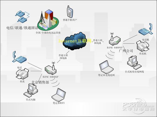 BiPAC 6404VGP其實(shí)就是一個(gè)VoIP語(yǔ)音網(wǎng)關(guān),VoIP就是一種把語(yǔ)音信號(hào)轉(zhuǎn)換成在網(wǎng)絡(luò)上傳輸?shù)臄?shù)字信號(hào)的技術(shù),它的應(yīng)用已經(jīng)非常成熟,我們經(jīng)常使用的QQ語(yǔ)音聊天功能也就是VoIP的一種表現(xiàn)形式。在所有大型跨國(guó)企業(yè)里我們幾乎都能看到VoIP技術(shù)的身影,這是因?yàn)殡娦胚\(yùn)營(yíng)商的長(zhǎng)途電話費(fèi)一般都不便宜,而我們企業(yè)的網(wǎng)絡(luò)使用費(fèi)一般又是包月的,通過無(wú)限包月的網(wǎng)絡(luò)打免費(fèi)的國(guó)際國(guó)內(nèi)長(zhǎng)途電話不就是占電信的便宜嘛?