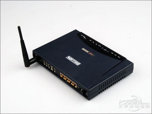 BiPAC 6404VGP外觀看上去與一臺(tái)普通的無(wú)線路由器沒多大區(qū)別,由于是面向企業(yè)級(jí)用戶,所以外型設(shè)計(jì)比較沉穩(wěn)。整機(jī)深藍(lán)色,在無(wú)線路由器的正上方鮮明的標(biāo)注出它同時(shí)還是一臺(tái)VoIP語(yǔ)音網(wǎng)關(guān)。