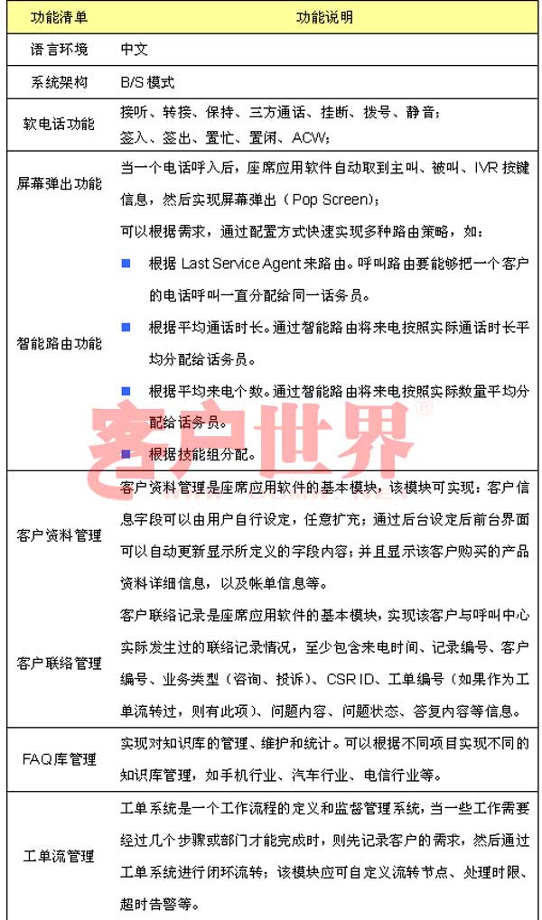 呼叫中心是企業(yè)和客戶互動(dòng)的溝通平臺,要真正有效管理客戶服務(wù),優(yōu)化客戶服務(wù)處理流程,座席應(yīng)用軟件是呼叫中心建設(shè)的關(guān)鍵,座席應(yīng)用軟件與企業(yè)后臺各個(gè)業(yè)務(wù)系統(tǒng)有機(jī)結(jié)合,處理包括業(yè)務(wù)咨詢、信息查詢、投訴建議、業(yè)務(wù)受理等呼入業(yè)務(wù),以及客戶回訪、滿意度調(diào)查、電話營銷和派工等呼出業(yè)務(wù)。