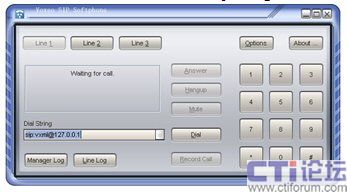 最后,交卷的時刻到了,我們的應(yīng)用到底能不能用呢?讓我們來測試一下。打開Prophecy自帶的SIP Phone,如圖4所示,給sip:vxml@127.0.0.1撥號。當(dāng)我們聽到揚聲器傳來“Welcome