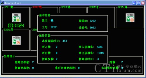 通過坐席監(jiān)控程序,呼叫中心管理人員可以實時監(jiān)控座席的登錄時間、當前狀態(tài)(空閑、忙于外線或內(nèi)線、正在振鈴、免打擾、限制時間、報警、退出等)、當前狀態(tài)的起始時間、持續(xù)時間、與誰連接等,從而實現(xiàn)簡單明了的質(zhì)檢功能。我們實現(xiàn)了兩種坐席監(jiān)控:C/S模式和B/S模式。