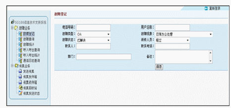 在故障受理方面,該系統(tǒng)同樣出色。它可以建立統(tǒng)一的語音受理號碼和建立網(wǎng)站,方便用戶通過語音和電腦雙途徑進(jìn)行故障申報。而出色的無紙收發(fā)傳真功能更是方便使用者通過網(wǎng)絡(luò)用軟件的方式發(fā)送傳真或查詢接收到的傳真文件。