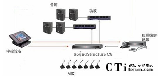 根據(jù)用戶的需求,結(jié)合用戶會議室現(xiàn)有的設(shè)備,我們選用寶利通具有獨(dú)特聲音處理技術(shù)的音頻處理平臺——SoundStructureC8。SoundStructureC8連接本地麥克風(fēng)和功放系統(tǒng),通過反饋聲抑制的功能來消除本地擴(kuò)聲導(dǎo)致的嘯叫,保證會議室的聲音效果。C8聲音處理系統(tǒng)還可以和視頻會議以及電話會議一起使用,解決遠(yuǎn)程會議的回聲和噪聲問題,改善會議質(zhì)量,提高會議效率。