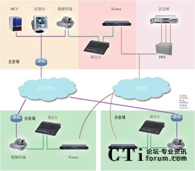 系統(tǒng)基于PSTN電話網(wǎng)絡(luò), 在視頻會(huì)議系統(tǒng)中心會(huì)場(chǎng)配備一套POLYCOM VORTEX EF2241與會(huì)場(chǎng)調(diào)音臺(tái)聯(lián)結(jié),并根據(jù)會(huì)場(chǎng)數(shù)量配備一套相應(yīng)方數(shù)的音頻會(huì)議橋,各分會(huì)場(chǎng)分別配備一套POLYCOM VORTEX EF2211與會(huì)場(chǎng)調(diào)音臺(tái)聯(lián)結(jié),如用戶無(wú)線路條件,也可使用當(dāng)?shù)剡\(yùn)營(yíng)商的電話會(huì)議平臺(tái)。