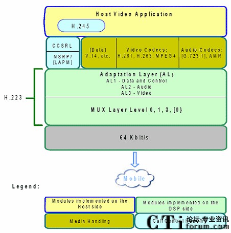 中間層是H.223協(xié)議,負(fù)責(zé)的媒體混合表格的交換(Multiplex Table),H.223的處理一般是用硬件實(shí)現(xiàn),典型的硬件處理芯片是Ti的6xxx視頻處理器。