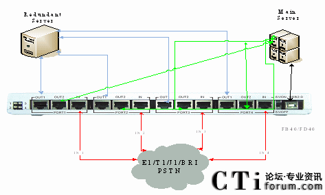 每一個FA40/FB40/FD40失效轉(zhuǎn)換機支持四個備用端口,通過多個失效轉(zhuǎn)換機堆疊,可以支持大容量IP通信系統(tǒng)的失效備援。