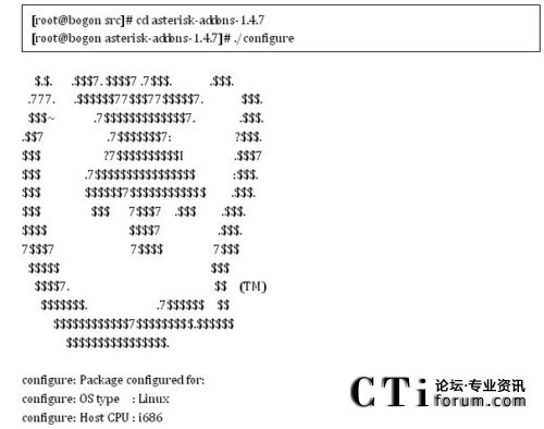 輸入 cd /usr/src/asterisk-xxxx //xxxx代表對(duì)應(yīng)的版本號(hào)./configure