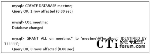 5)我們依次創(chuàng)建數(shù)據(jù)庫meetme,創(chuàng)建用戶meetme,并設置meetme的密碼,詳細命令以及正確輸出如下: